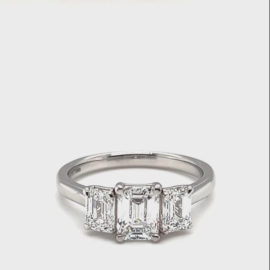 Platinum 1.91ct Emerald Cut Trilogy Ring