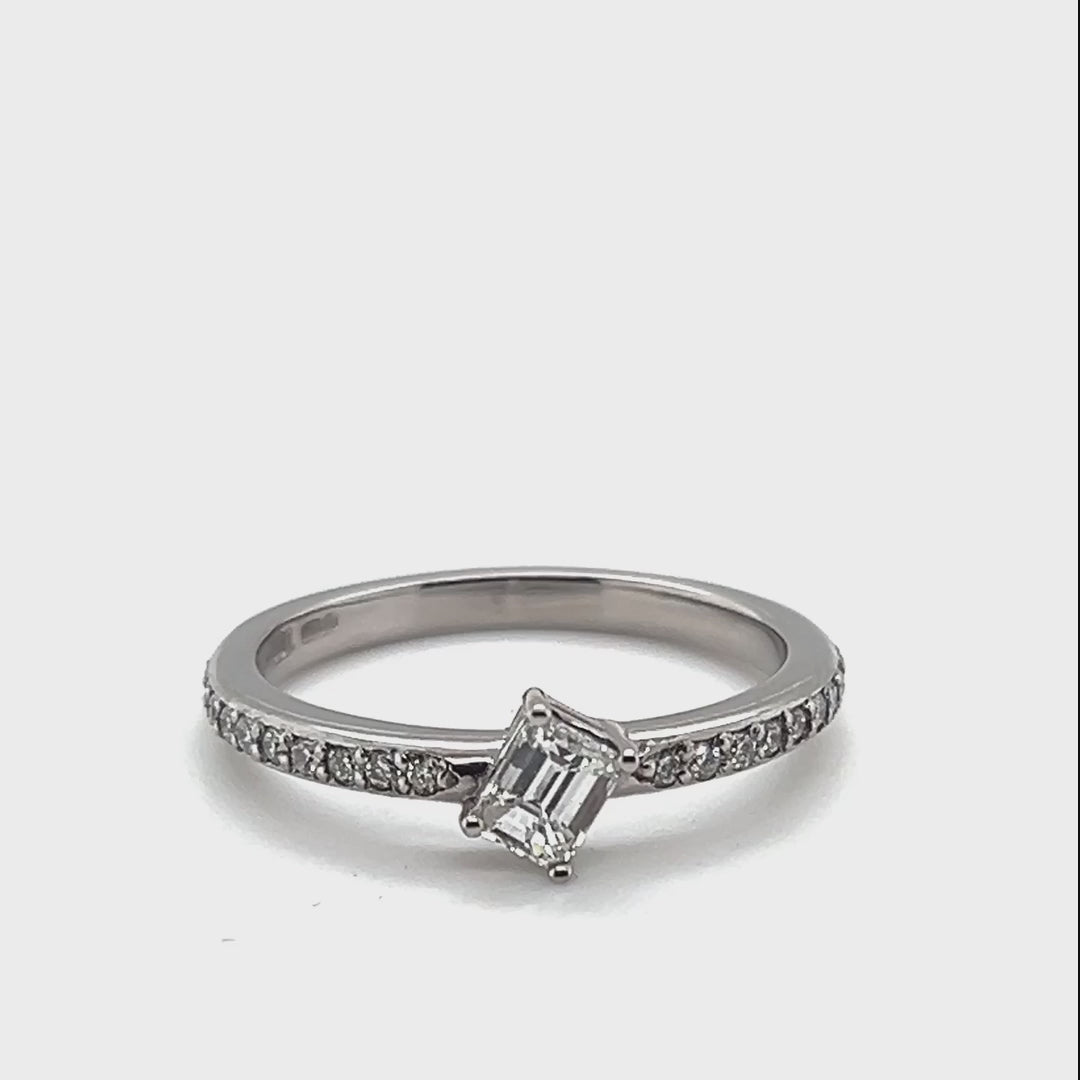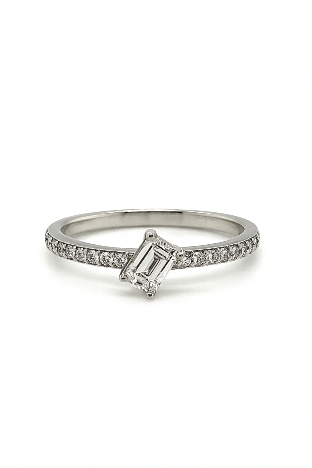 18k White Gold 0.43cttw Emerald Cut Solitaire Engagement Ring. SKU:03-02-060