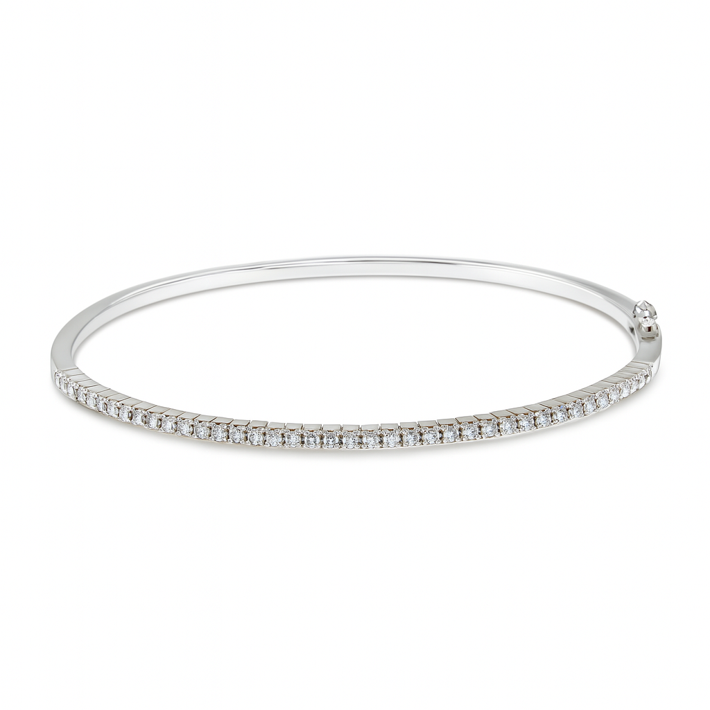 Adorned with 18k White Gold with sensational 0.46ct Round Brilliant Diamonds, this exquisite bangle radiates timeless class and elegance, making it the perfect piece for any occasion.