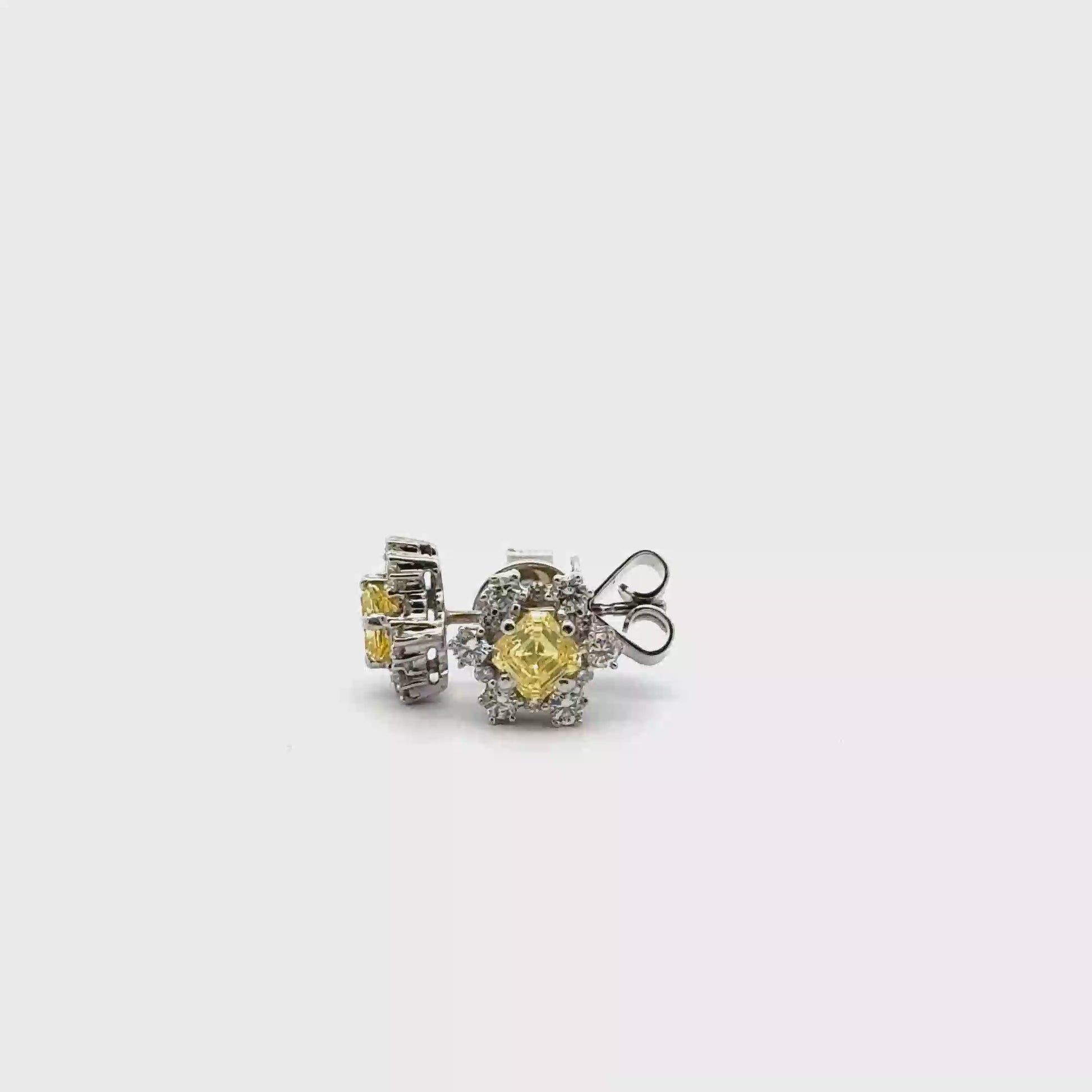 18k White Gold 1.23cttw Square Emerald Cut Yellow Lab Diamond Cluster Stud Earrings. SKU:68-06-026
