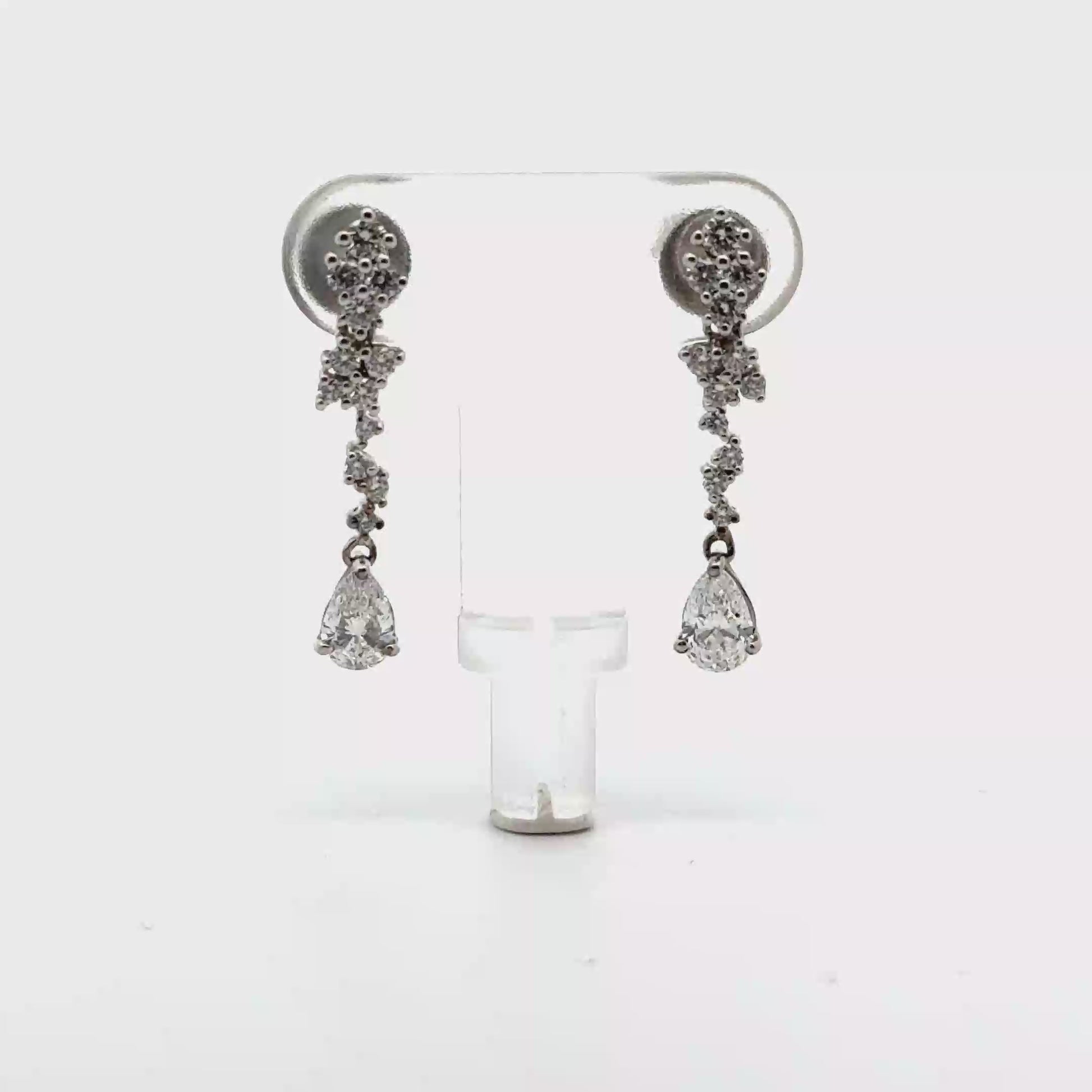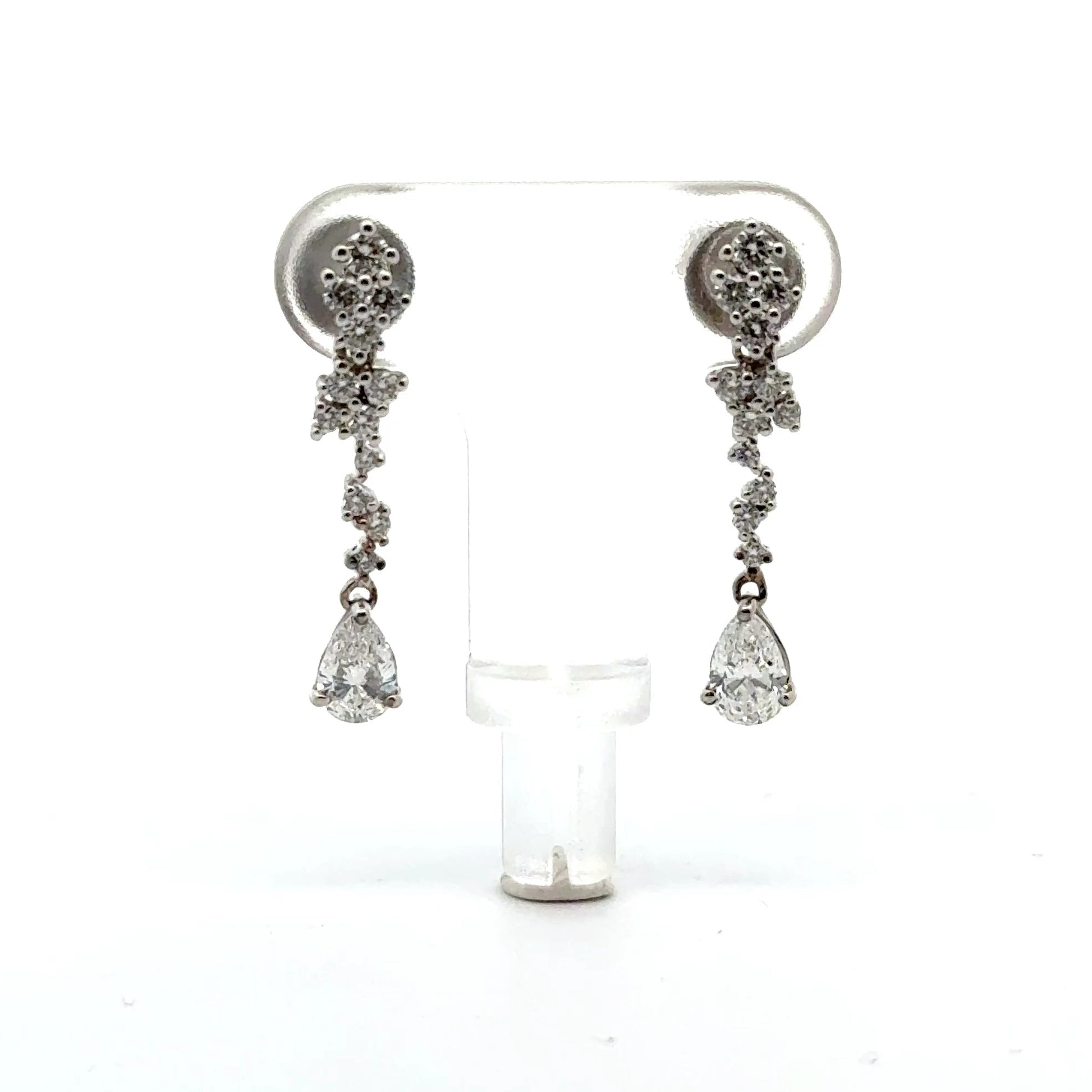 18k White Gold 1.04cttw Pear & Round Brilliant Cut Lab Diamond Drop Earrings. SKU:68-06-015