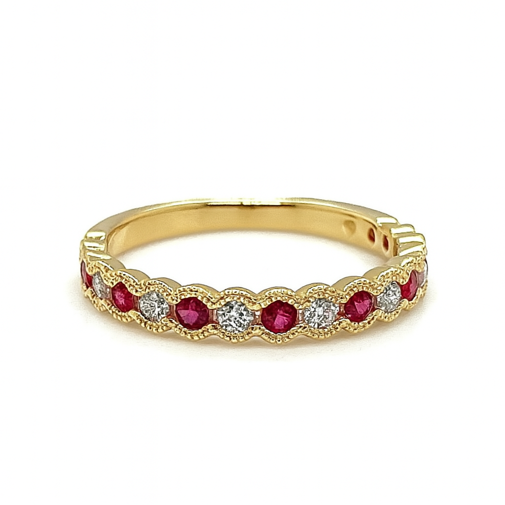 18k Yellow Gold Ruby & Diamond Ring. SKU:21-01-338