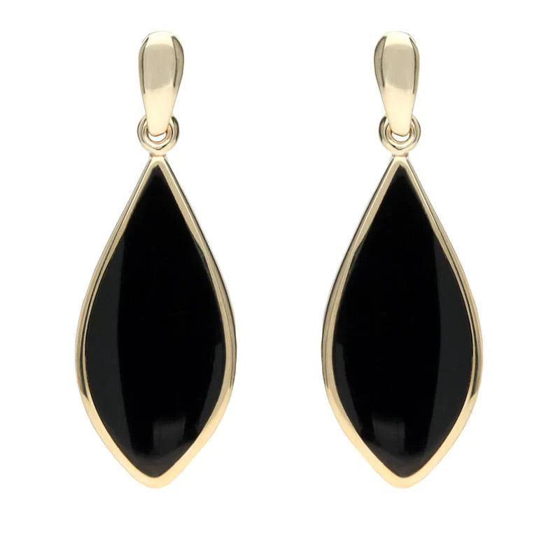 Our stunning core collection showcases a wide variety of timeless jewellery that can be worn daily. Bring a glimmer of life to your wardrobe with these gorgeous 9k yellow gold jet drop earrings - an exquisite accessory that will radiate all day.