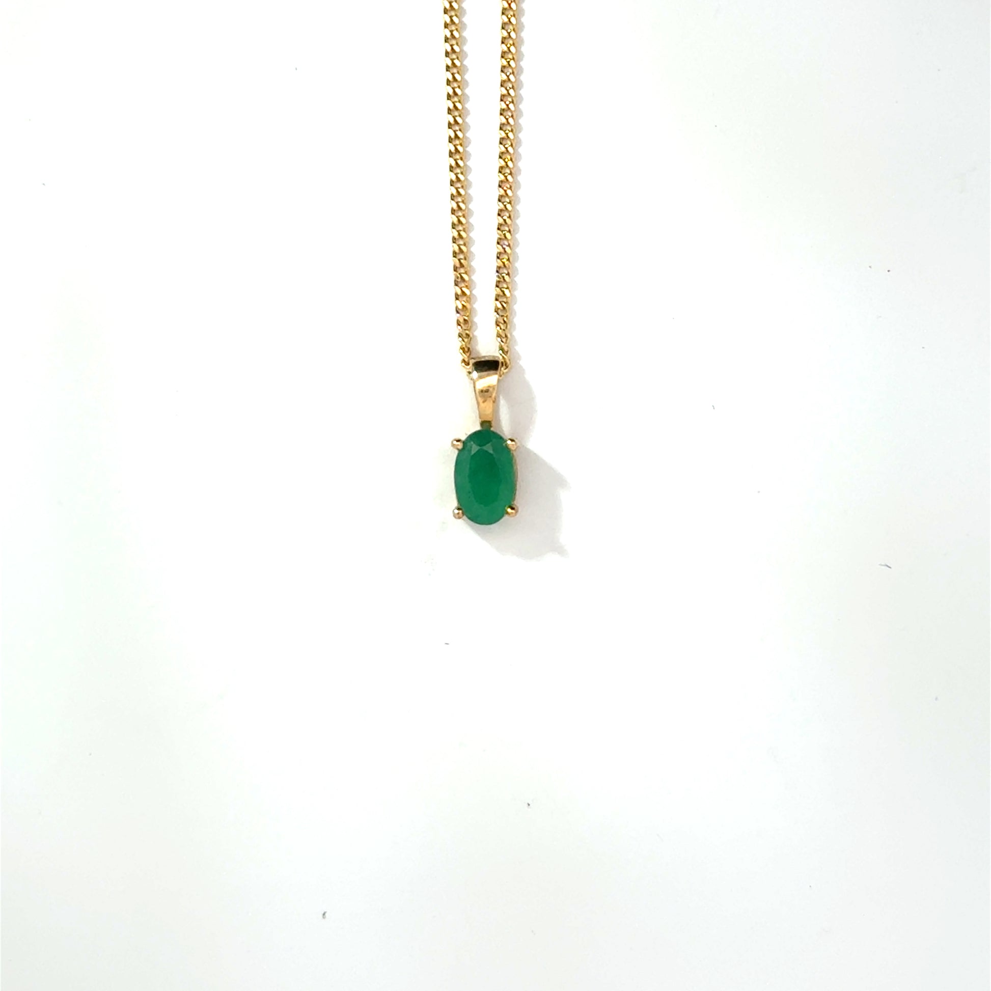 9k Yellow Gold Oval Cut Green Emerald Pendant