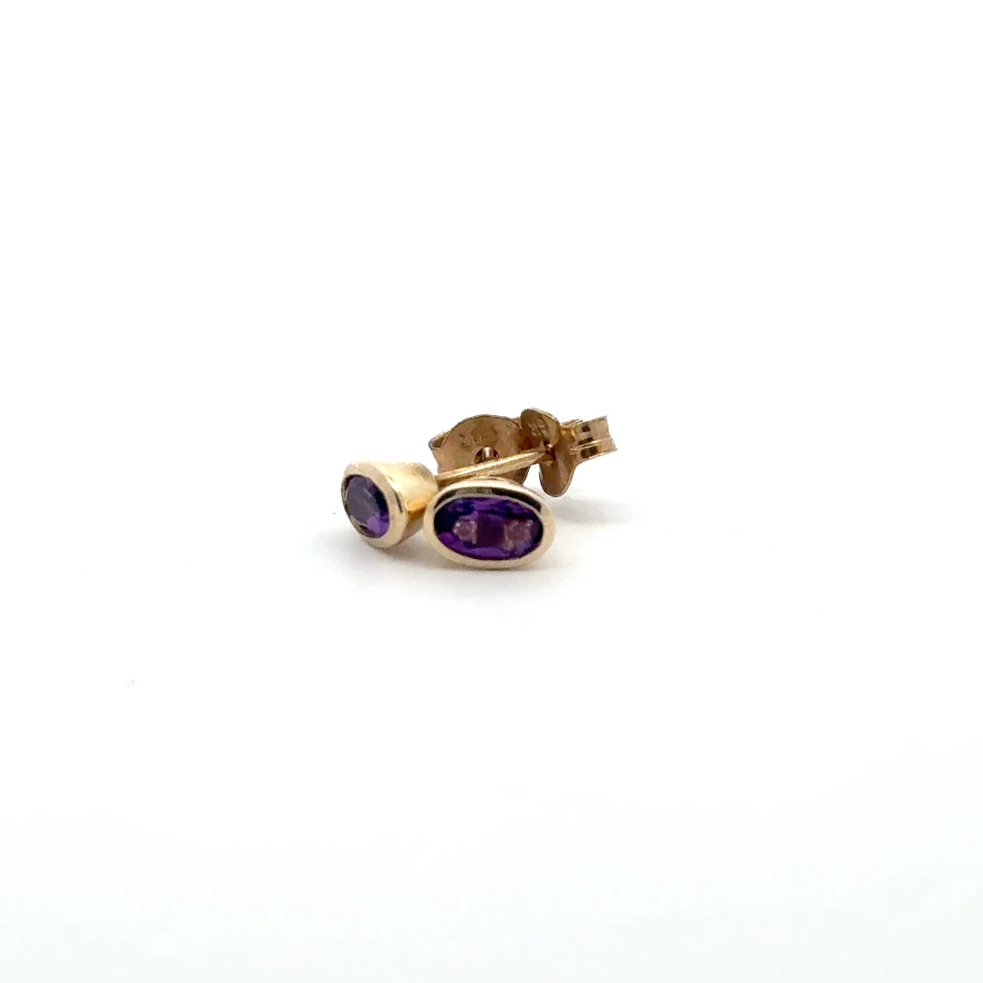 9k Yellow Gold Oval Cut Purple Amethyst Stud Earrings