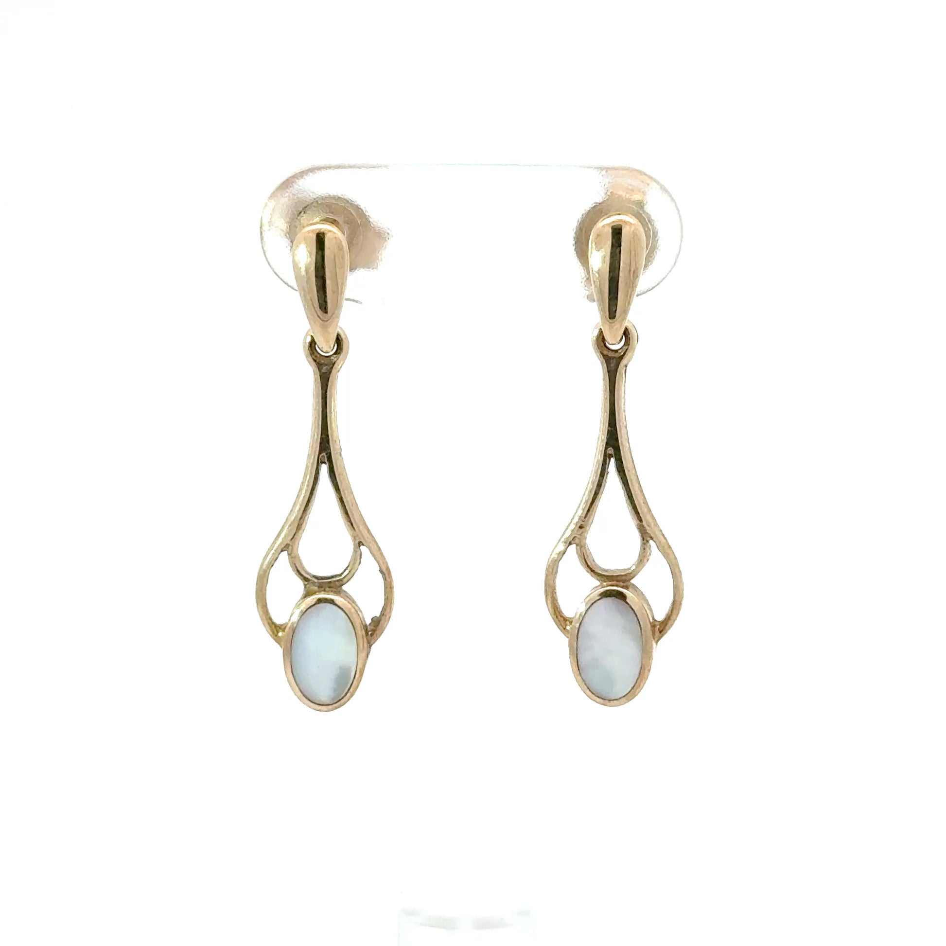9k Yellow Gold Oval White Mother of Pearl Drop Earrings