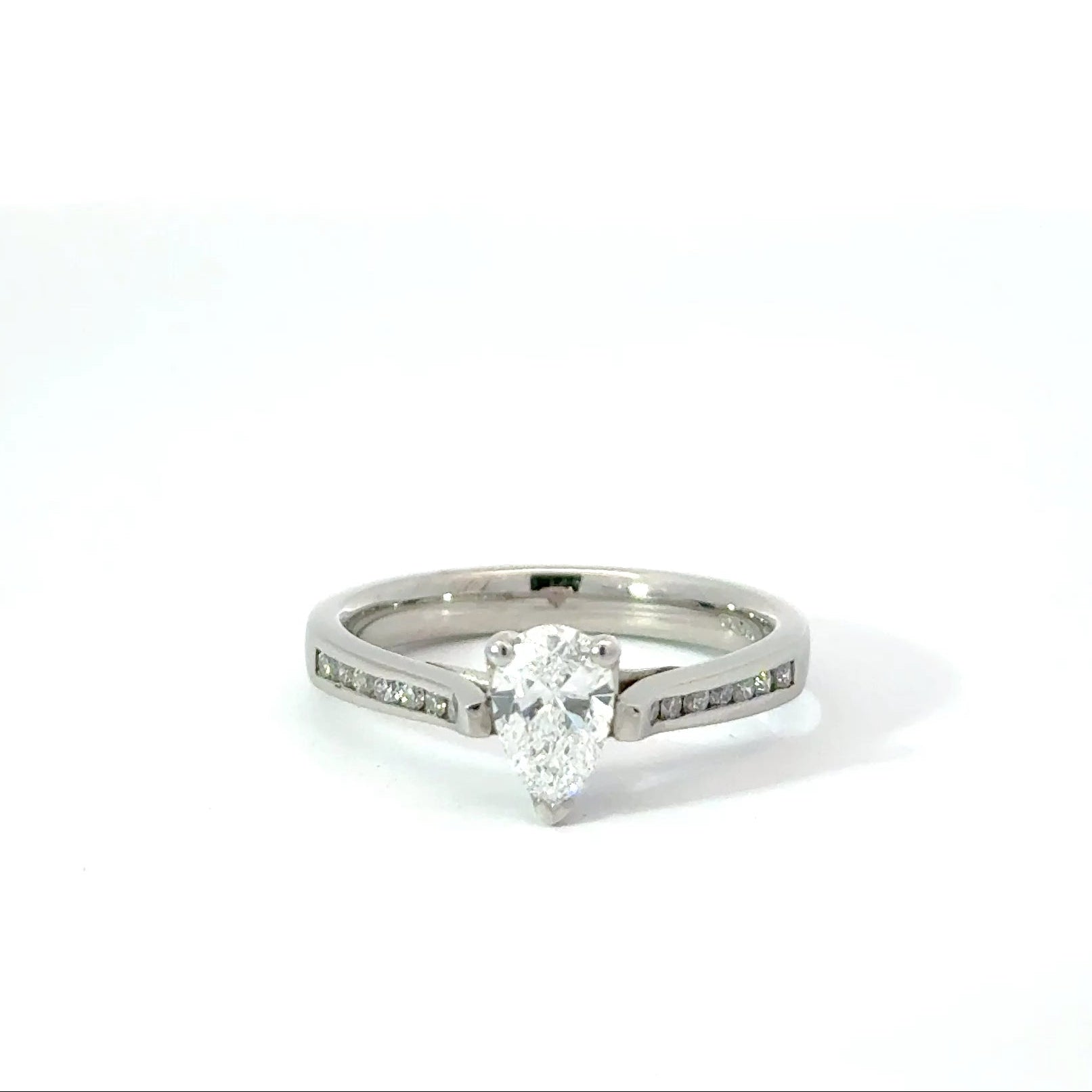Platinum 0.76cttw Pear Cut Lab Diamond Solitaire Engagement Ring. SKU:68-01-112