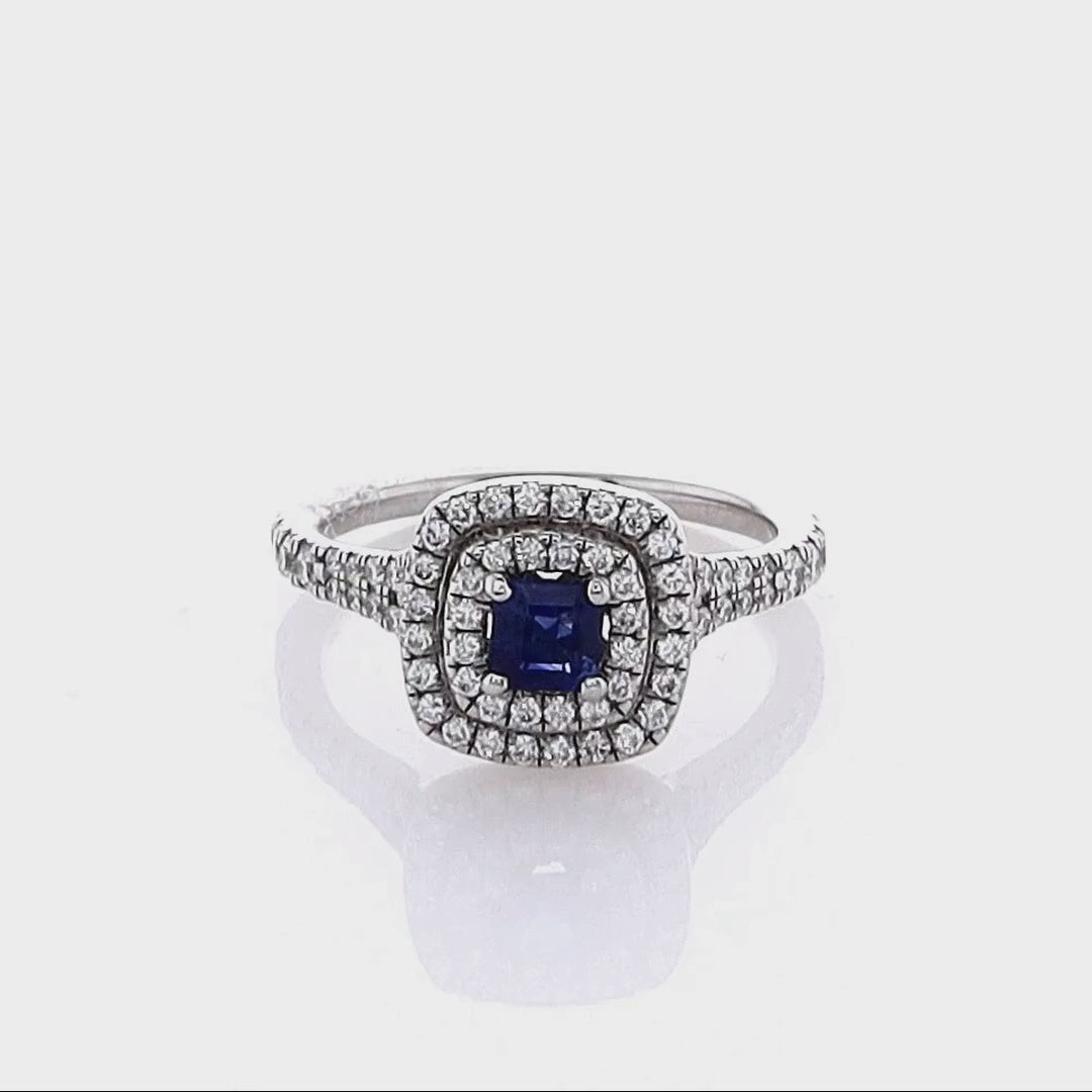 Platinum Double Halo Diamond & Sapphire Ring. SKU:22-01-491