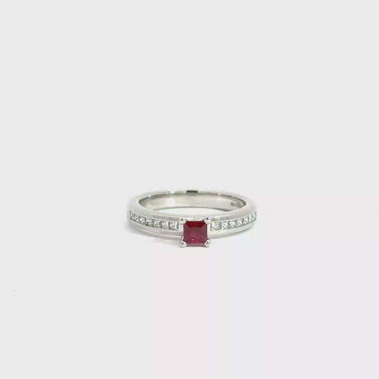 Platinum Princess Cut Red Ruby Solitaire Ring
