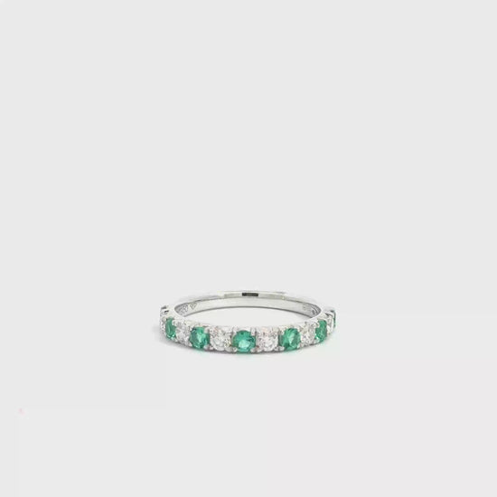 Platinum Round Cut Green Emerald Half Eternity Ring