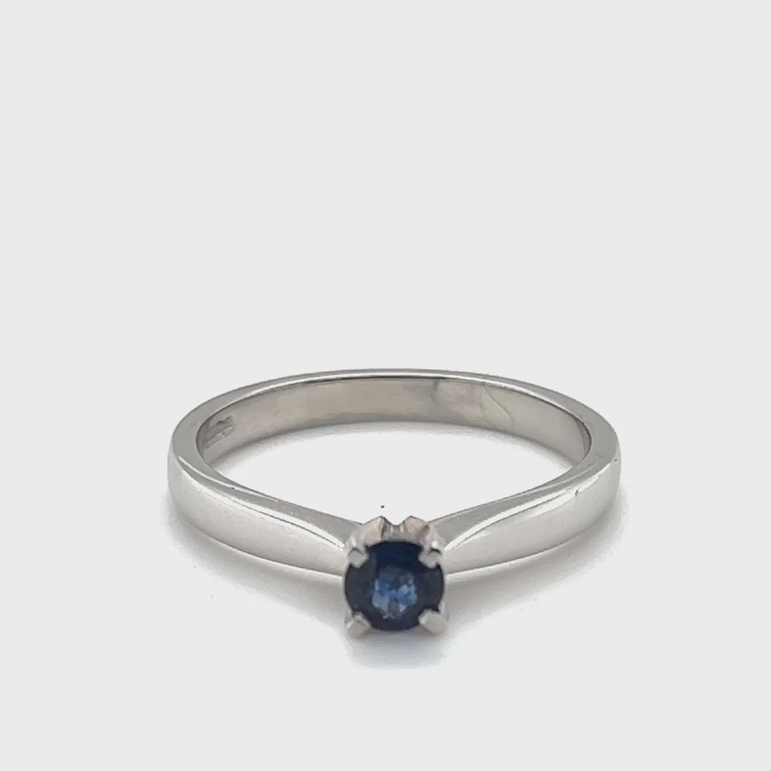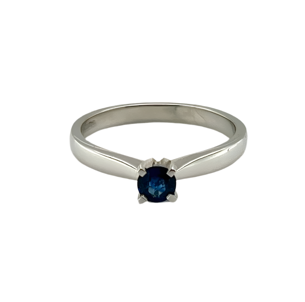 Platinum Round Sapphire Solitaire Ring. SKU:22-01-518