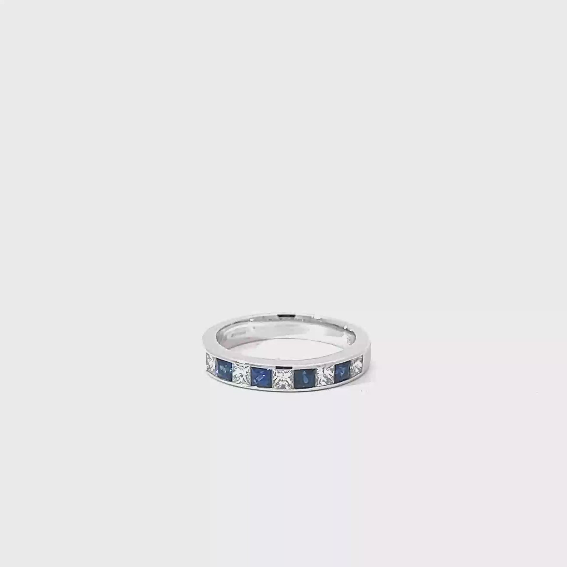18k White Gold Square Cut Blue Sapphire Half Eternity Ring. SKU:22-01-587