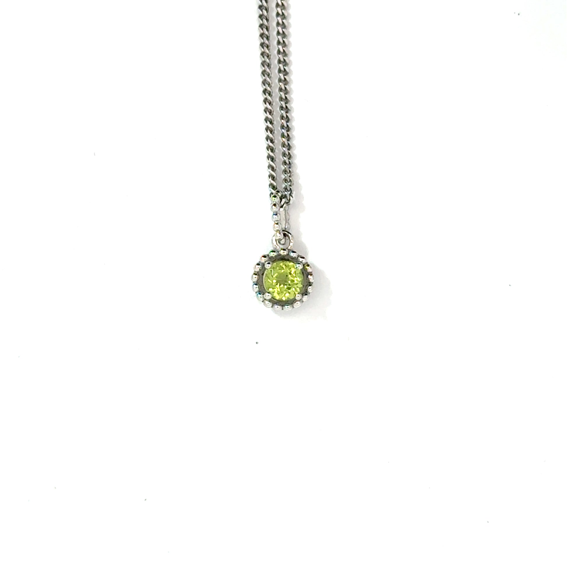 Silver Round Cut Green Peridot Pendant. SKU:07-04-404