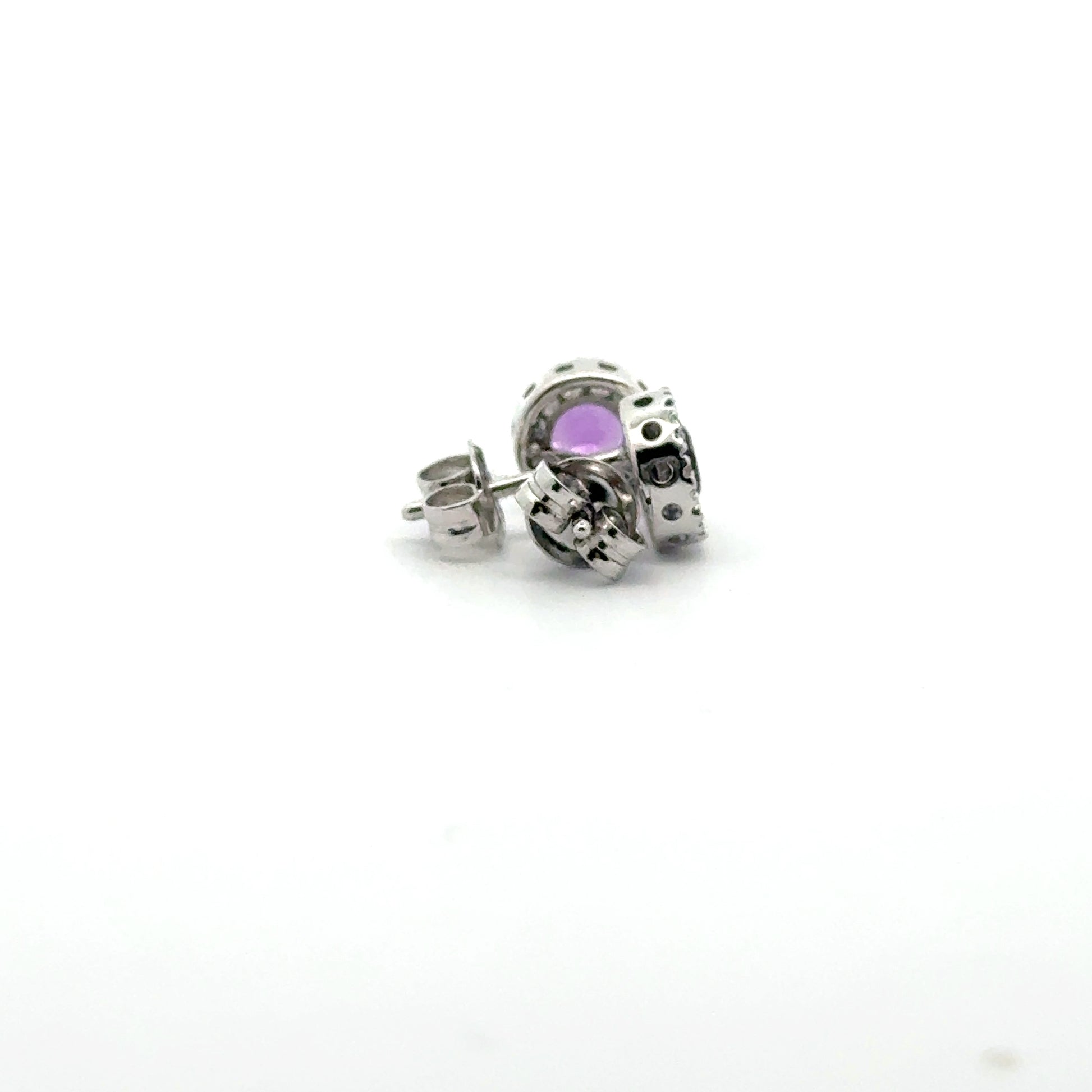 Silver Round Cut Purple Amethyst & CZ Stud Earrings. SKU:07-01-347
